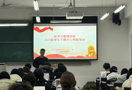 为提升学生干部综合素质与办公技能水平,更好地服务广大同学,11月25日,经济与管理学院于高台校区214教室针对 2024 级学生干部举办了办公技能培训。此次培训通过系统教学与实操演练相结合的方式,助力学生干部掌握必备办公技能。