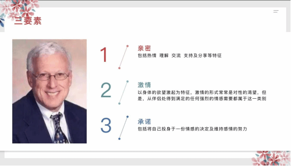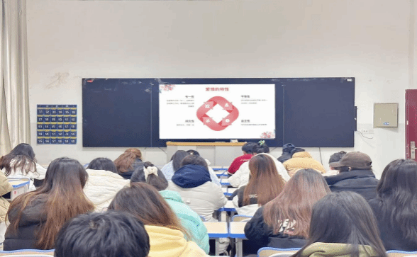 心理主题班会由心理委员主持,一开始便通过一段视频,引发了同学们对大学生恋爱心理的关注与思考。随后,班会进入了主题分享环节,几位同学勇敢地上台,真诚地分享了自己的恋爱经历、感受与领悟,他们的分享触动了在场每一个人的心弦,也让大家开始反思自己对恋爱的态度和看法。心理委员还为同学们介绍了斯腾伯格爱情三元论。紧接着,班会组织了小组讨论。同学们围绕恋爱中的困扰、恋爱与学业的关系、如何保持恋爱中的独立与自我等话题展开了热烈的讨论。大家各抒己见,交流心得,现场气氛十分活跃。