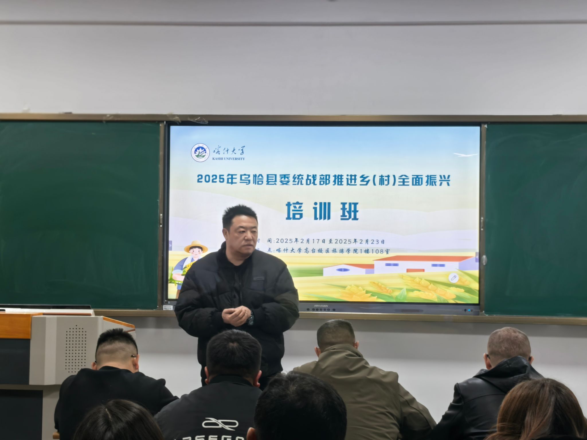 为深入贯彻新时代党的治疆方略,扎实推进乡村全面振兴工作,2025 年2月17日至2月23日,新疆克州乌恰县委托喀什大学经济与管理学院,在喀什大学高台校区,对乌恰县相关工作人员开展推进乡(村)全面振兴培训。此次培训旨在提升相关工作人员对乡村振兴政策的理解与执行能力,为乌恰县乡村发展注入新动力。
