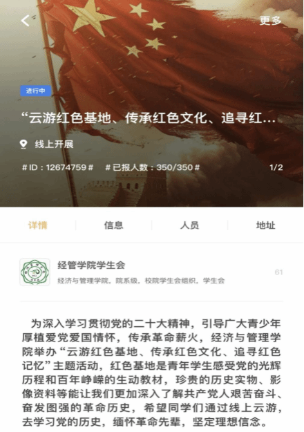2025年4月10日-4月15日在线上举办“云游红色基地、传承红色文化、追寻红色记忆”主题活动。
