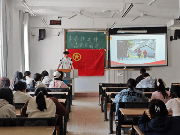 为了引导广大青年学子树立服务基层、奉献祖国的远大志向,经济与管理学院跨境电子商务2414班于2025年4月23日在高台校区新文科楼321教室开展了一场以“青春赴西部,志愿启新程”为主题的团课活动。