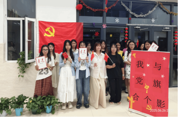 为迎接“七一”建党节,传承红色基因,厚植爱党情怀,经济与管理学院于6月26日、27日在新泉校区14号楼、4号楼宿舍楼大厅开展“我与党旗合个影”活动。