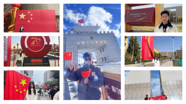 第二部分,个人合影打卡:定格初心与担当。经济与管理学院学生第一党支部的同志们与“国旗”、“新疆维吾尔自治区成立70周年主题元素”、“党旗”等拥有红色正能量的背景一起合影拍照。这不仅是一次简单的合影,更是党员同志们对祖国深沉热爱的真情流露