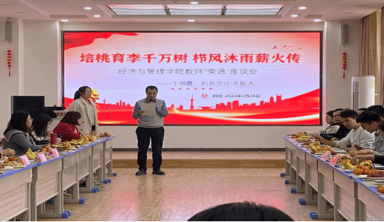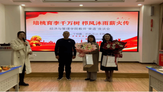 2024年2月28日,经济与管理学院工会精心安排,在新泉校区经管楼208学术报告厅,举行了一场温馨而庄重的教师“荣退”座谈会,为在教学岗位奋斗了一生即将退休的教师送上了最诚挚的祝福和感谢。
