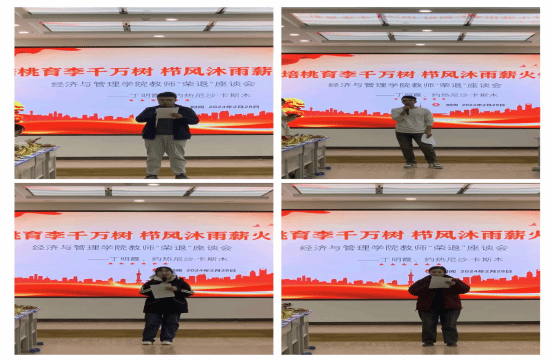随后,退休教师也充分表达了对学院的感激和对学校的留恋之情。他们为青年教师们分享了工作经验,表达了对学院、对学校未来的期望和祝福。