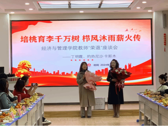 最后,在学生合唱歌曲《再见》和师生共跳新疆舞的欢乐氛围中,经济与管理学院教师“荣退”座谈会圆满结束。