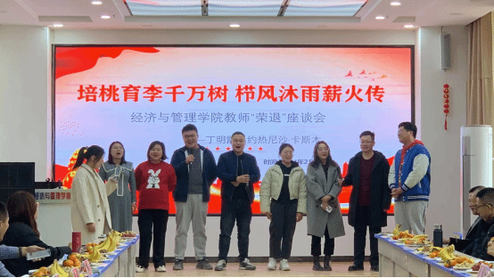 经济与管理学院全体教职工共同合唱了《国家》将“荣退”座谈会的气氛推向高潮。