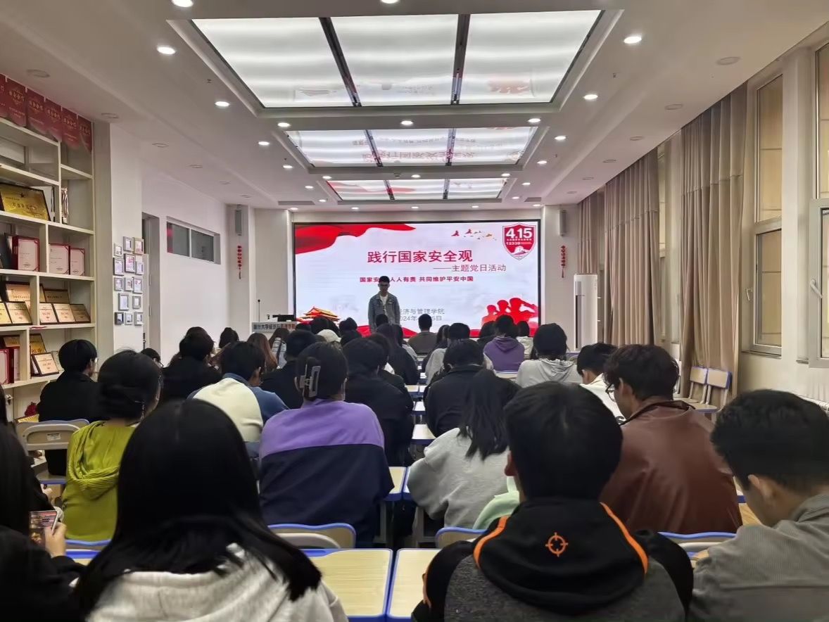 为了响应“第十次国家安全日”的号召,加强学生对国家安全的认识和理解,增强学生的国家安全意识和保密意识,经济与管理学院学生第一党支部于2024年4月15日在经管楼208教室举行了一场以践行国家保密观为主题的党日学习活动。经济与管理学院学生党员,学生会成员,辅导员助理以及党建和团委团队参与本次活动,由辅导员朱晓波老师担任讲师。