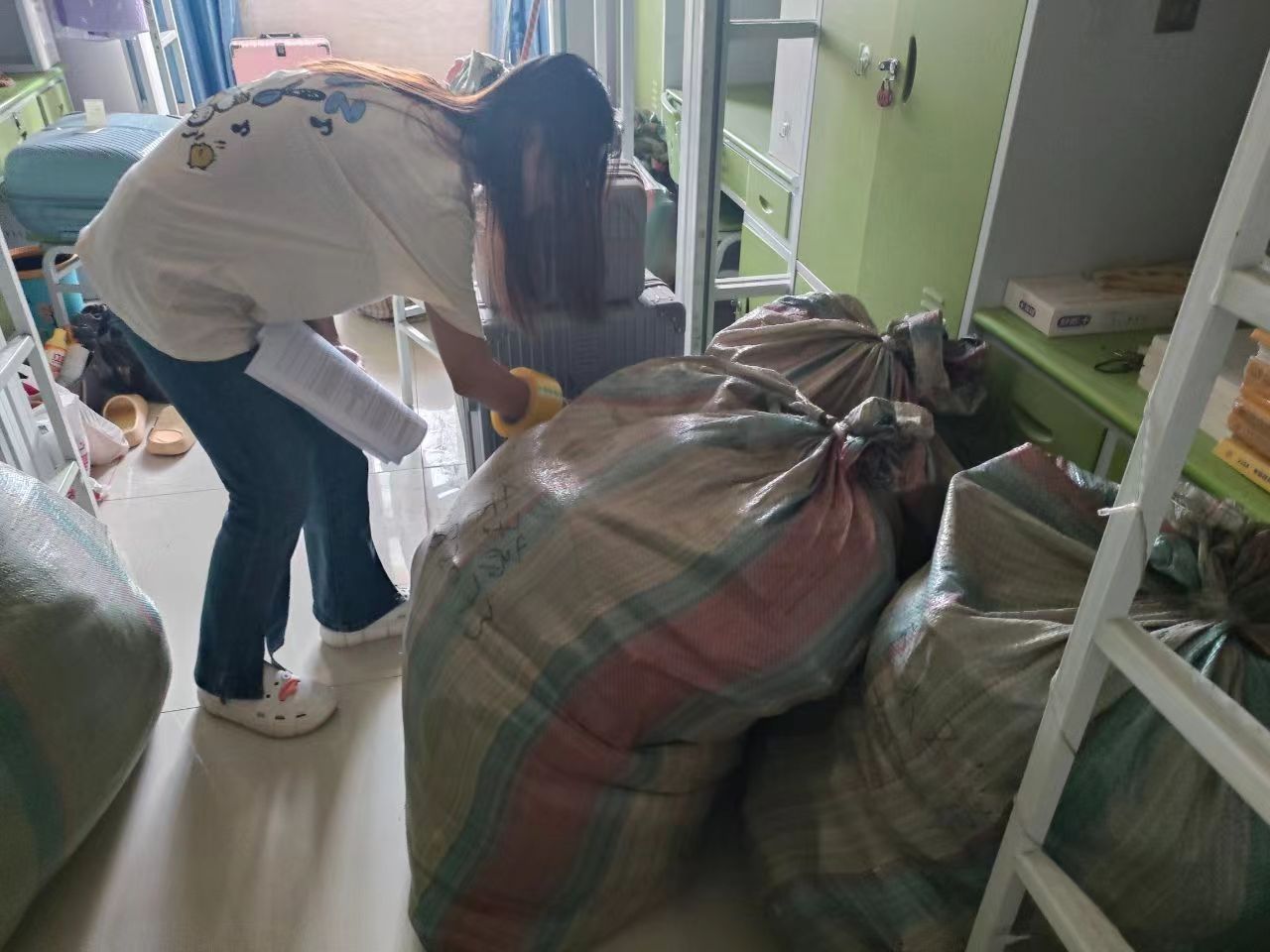 为了确保此次行李打包活动的顺利进行,学院提前进行了周密的筹备工作。学院为志愿者们准备了打包所需的各类物资,包括编织袋、标签、胶带记号笔等,确保每位志愿者都能以最佳状态投入到服务中。在学院老师的指导下,志愿者们分工明确,有的负责联系大四学生,有的负责整理衣物,还有的负责粘贴标签,利用电话沟通或视频通话等形式,确保每一件行李都能得到妥善安置。面对繁重的任务,志愿者们没有丝毫怨言,他们耐心细致地帮助同学们打包行李,还不时地询问同学们的需求和意见,让原本繁琐的搬迁工作变得温馨而有序。