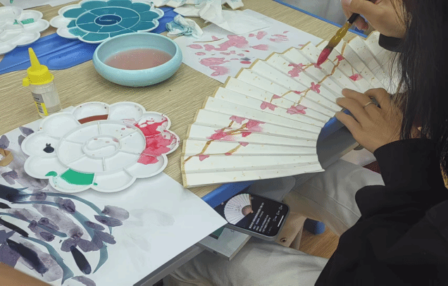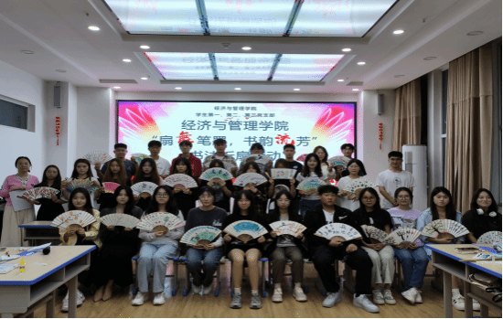 本次活动的重要一环为“扇舞笔墨-书韵流芳”活动。在这一环节中,教师们和学生代表们以教师节为主题,纷纷提笔在折扇上书写节日祝福或读书寄语。他们或挥洒自如地书写着对师恩的感念,或细腻入微地描绘着从事教育行业的自豪感和责任感。每一把折扇都承载着对教师的崇高敬意和对教育的无限热爱。