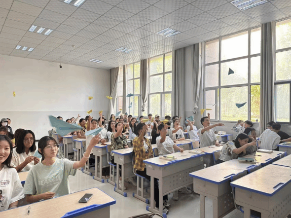 互动游戏环节将活动推向了高潮,”让烦恼随风飞吧“游戏让同学们把自己日常生活中的烦恼写在纸上,然后折成纸飞机,在上面画上自己喜欢的图案,最后,将包裹着困扰的纸飞机掷向天空,让心事随风而去。