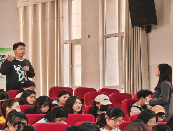 宣讲会伊始,中国绿发集团的负责人稳步走上讲台,开启了此次宣讲之旅。令人惊喜的是,负责人并未局限于单纯介绍企业概况和招聘信息,而是极为注重与台下学生的互动交流。期间,为充分调动学生的积极性,集团还特别推出了发送简历pass卡的活动,获得此卡的幸运同学可直接直通笔试环节,这一举措瞬间点燃了现场气氛。