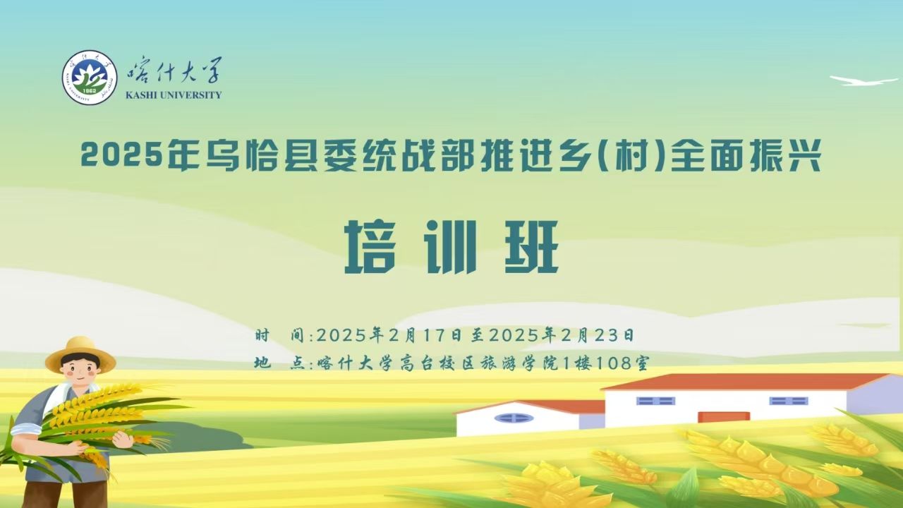 为深入贯彻新时代党的治疆方略,扎实推进乡村全面振兴工作,2025 年2月17日至2月23日,新疆克州乌恰县委托喀什大学经济与管理学院,在喀什大学高台校区,对乌恰县相关工作人员开展推进乡(村)全面振兴培训。此次培训旨在提升相关工作人员对乡村振兴政策的理解与执行能力,为乌恰县乡村发展注入新动力。