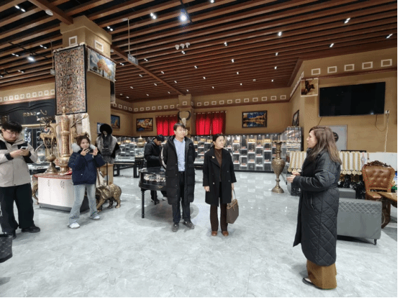 上午,研讨会创新性采取“田野课堂”模式,在张双娜副院长及教师的指导下,国际商务、国际经济与贸易、财务管理、网络工程、数字媒体技术等专业的学生深度参与实地调研。师生一行深入当地工匠作坊、销售店铺,与非遗传承人、经营者进行面对面访谈。学生们系统运用所学知识,参与完成问卷设计、流程观察、需求记录及初步数据分析,直观了解了英吉沙小刀的历史沿革、工艺特点、销售渠道与核心痛点。这场生动的“移动课堂”,让抽象的管理理论与复杂的产业现实直接对话,极大地提升了学生发现、分析和解决实际问题的综合素养。