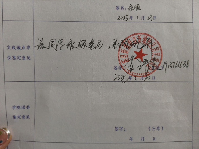 经济与管理学院跨境电子商务2415马蕊蕊在寒假期间于村委会值班,协助村干部开展多项工作,每日按时到岗,负责来访群众的接待与登记,耐心倾听诉求并做好记录,及时转达给相关负责人。协助整理文件资料,对各类档案进行分类归档,方便后续查阅。参与政策宣传工作,向村民讲解医保、养老等惠民政策,帮助村民了解政策内容与办理流程。协助组织村民活动,在活动筹备阶段,负责场地布置、物资准备等工作,活动开展时维持现场秩序,保障活动顺利进行