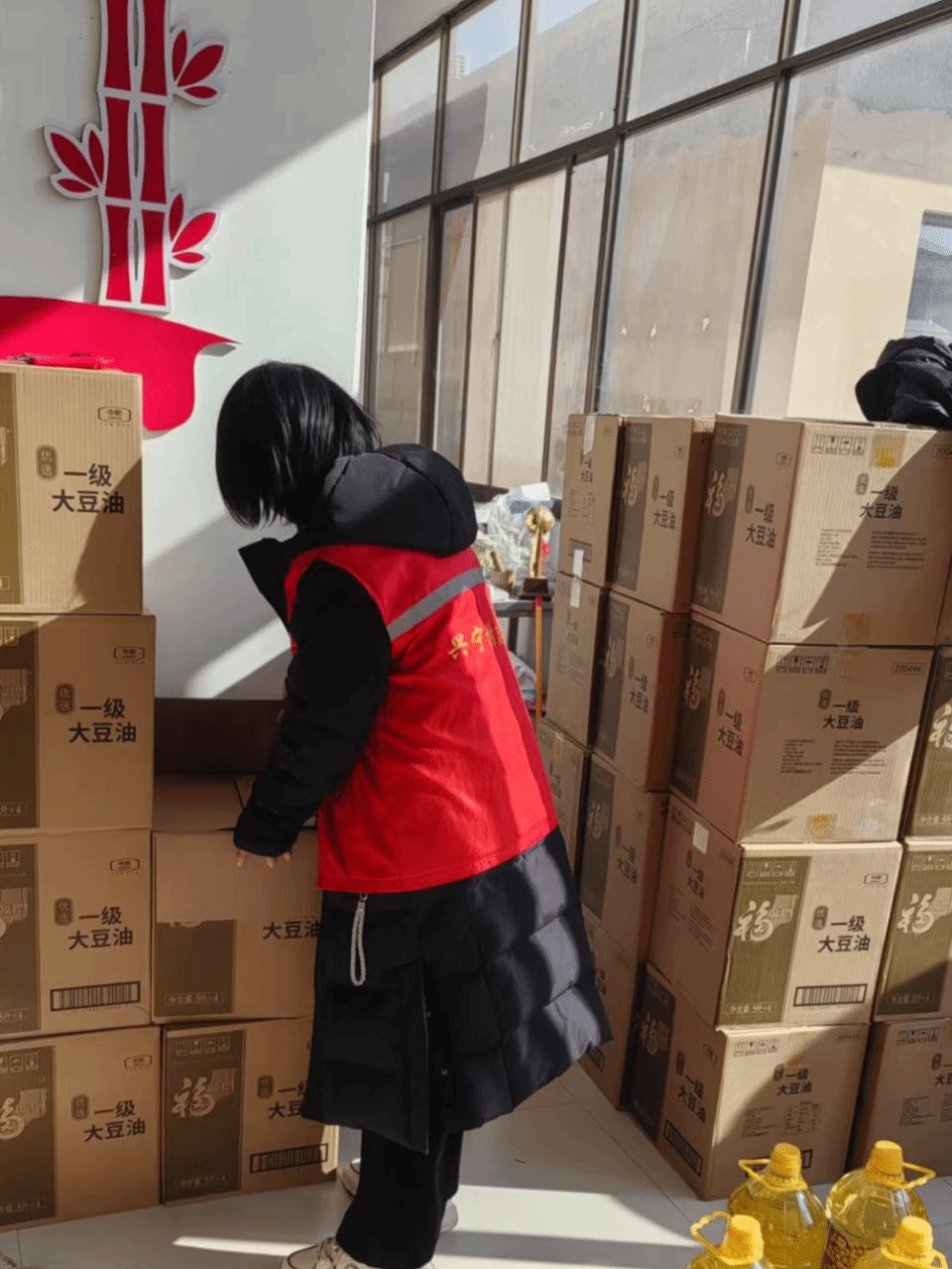 经济与管理学院国际经济与贸易2403班杨鑫玥在2025年2月8日,积极参与了河南省新乡县翟坡镇兴宁村村委会组织的“关爱乡镇老人,温暖冬日行动”公益活动。此次活动旨在为乡镇60岁以上的老人发放粮油,帮助他们度过一个温馨祥和的新春佳节。作为志愿者,该同学主要负责拆开粮油包装并将其搬运到指定地点。活动当天,村委会工作人员与志愿者们早早集合,分工明确,现场井然有序。该同学不仅将粮油整齐摆放,还为行动不便的老人提供上门配送服务,确保每一位老人都能感受到社会的关怀与温暖。活动过程中,村委会还特别安排了健康咨询和文艺表演,进一步丰富了老人们的精神生活。