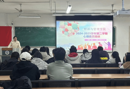 为全面提升心理委员的专业素养与实务能力,强化其在心理健康教育中的关键作用。2025年3月11日20:30,经济与管理学院辅导员钱红在高台校区新文科楼115教室对学院24级心理委员进行了以“我心向阳,栩栩盛开”为题的2024-2025学年第二学期的心理委员培训。