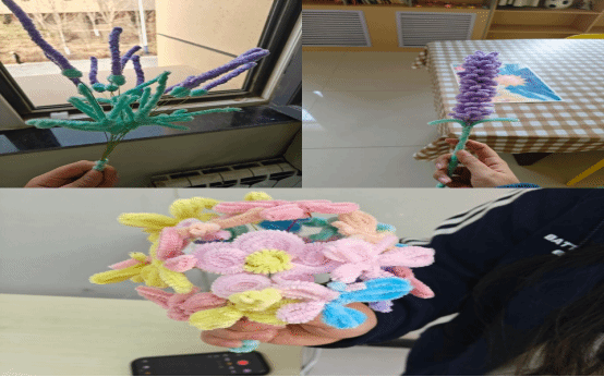 活动以手工制作为主,同学们发挥创意,用扭扭棒制作出形态各异的花朵、小动物等手工艺品。部分党员挥毫泼墨,完成一幅幅饱含敬意的书法作品,既表达对雷锋精神的传承,也积极响应学校“人人会写毛笔字”活动。大家在实践中感受劳动快乐与奉献喜悦,活动现场气氛热烈。