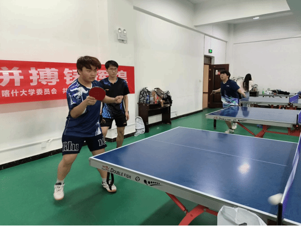 2025年4月12日,喀什大学乒乓球社团杯小组赛男子双人组圆满落幕。经济与管理学院乒乓球队以三胜一负的亮眼战绩从A组强势突围,成功晋级排位赛。