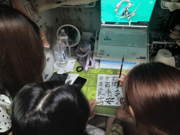 最后,同学们在寝室里进行书法技巧交流,相互分享书法学习中的技巧与感悟。笔墨本无心,书者赋之,于白纸上,尽显风骨。
