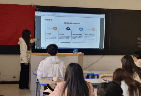 班会伊始,心理委员杨椋媛通过播放温暖治愈的短视频,引出“拥抱自己,向阳生长”这一主题,引发同学们对自我认知的思考。在“优点大轰炸”环节,同学们互相写下对方的闪光点,当看到纸条上同伴真诚的赞美时,许多同学露出惊喜又感动的笑容,在他人眼中的自己里,发现了更多美好。