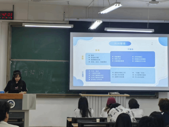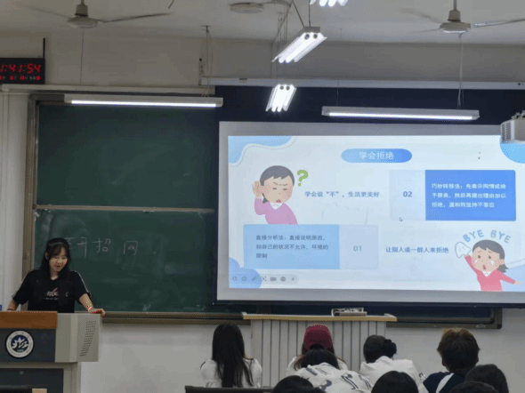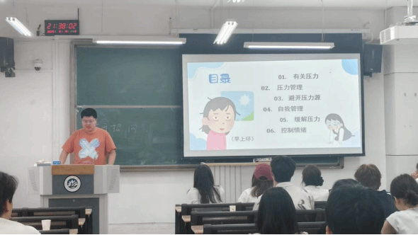 班会伊始,主讲人便清晰界定了“压力”的内涵:当自发或外界的要求超出个人的处理能力时,所产生的内心感受及身体反映。他们强调,压力本身具有两面性——适度的压力能成为前进的动力,但过度的压力则严重危害身心健康。现场引用了触目惊心的数据:超过70%的疾病与压力相关。从失眠、头痛、肠胃不适、高血压等身体问题,到记忆力下降、注意力不集中、悲观失望甚至更严重的心理危机,压力过载的后果警示着在场的每一位同学。