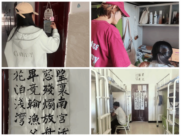 检查前,工作人员提前在各宿舍楼一楼集合:一方面明确卫生、安全等基础检查要求;另一方面完成人员分组,同步强调“礼貌沟通、公平记录”的工作准则,确保检查过程规范有序。检查过程中,工作人员严格遵循流程:每到一间宿舍,先轻声敲门并清晰说明来意,在获得同学允许后再进入。检查中发现,同学们的宿舍卫生状况较以往明显进步,部分宿舍还精心打造了文化墙,住宿氛围愈发温馨。工作人员对照标准逐项核查,重点查看地面清洁度、物品摆放整齐度,细致排查违规电器使用、电插板摆放不当等安全隐患;对发现的细节问题,当场耐心提醒并分享实用整理建议,同时再次强调用电等安全注意事项。此外,工作人员还结合“三强三优”评选方向,用影像记录优秀宿舍的特色亮点,为后续相关评选留存参考依据。