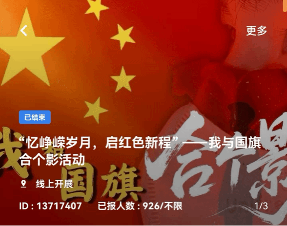 活动伊始,负责人将活动报名参与流程活动要求等通知到参与人员收到通知后同学们积极在小程序发布“与国旗合影”的图文贴,开启线上互动,在分享与点赞中抒发爱国情怀,以青春视角定格对祖国的热爱,在云端同框国旗的过程中传承红色基因、坚定理想信念。