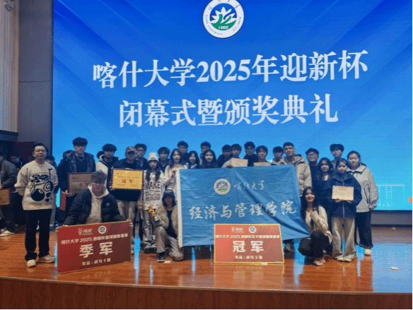 11月25日,喀什大学2025年迎新杯系列赛事闭幕式暨颁奖典礼在新泉校区图书馆三楼会议室隆重举行。经济与管理学院团委书记郭伟强、学院“迎新杯”获奖代表齐聚现场,共同见证青春荣耀时刻,分享拼搏收获的喜悦。