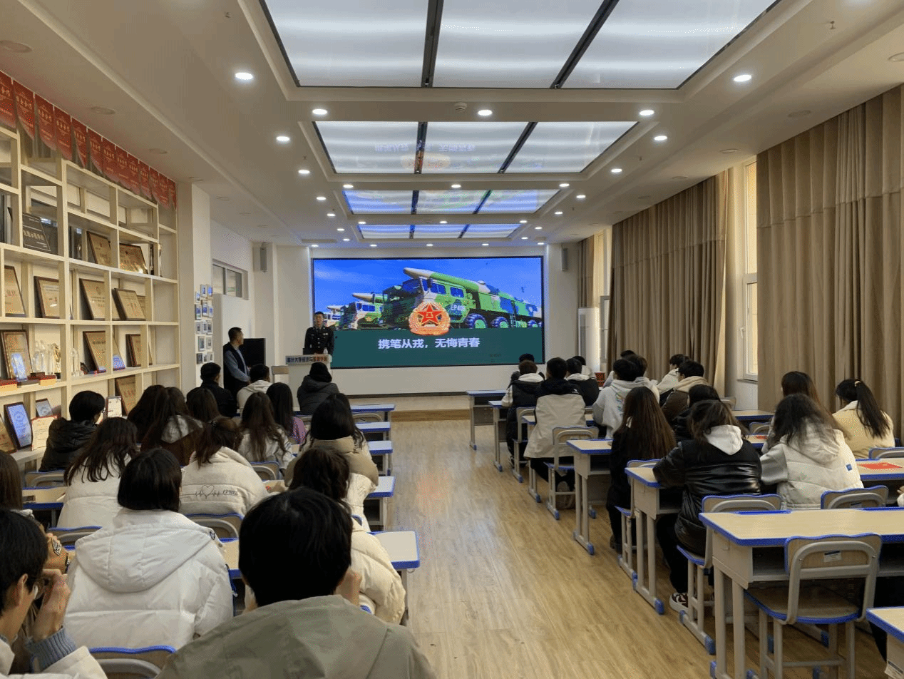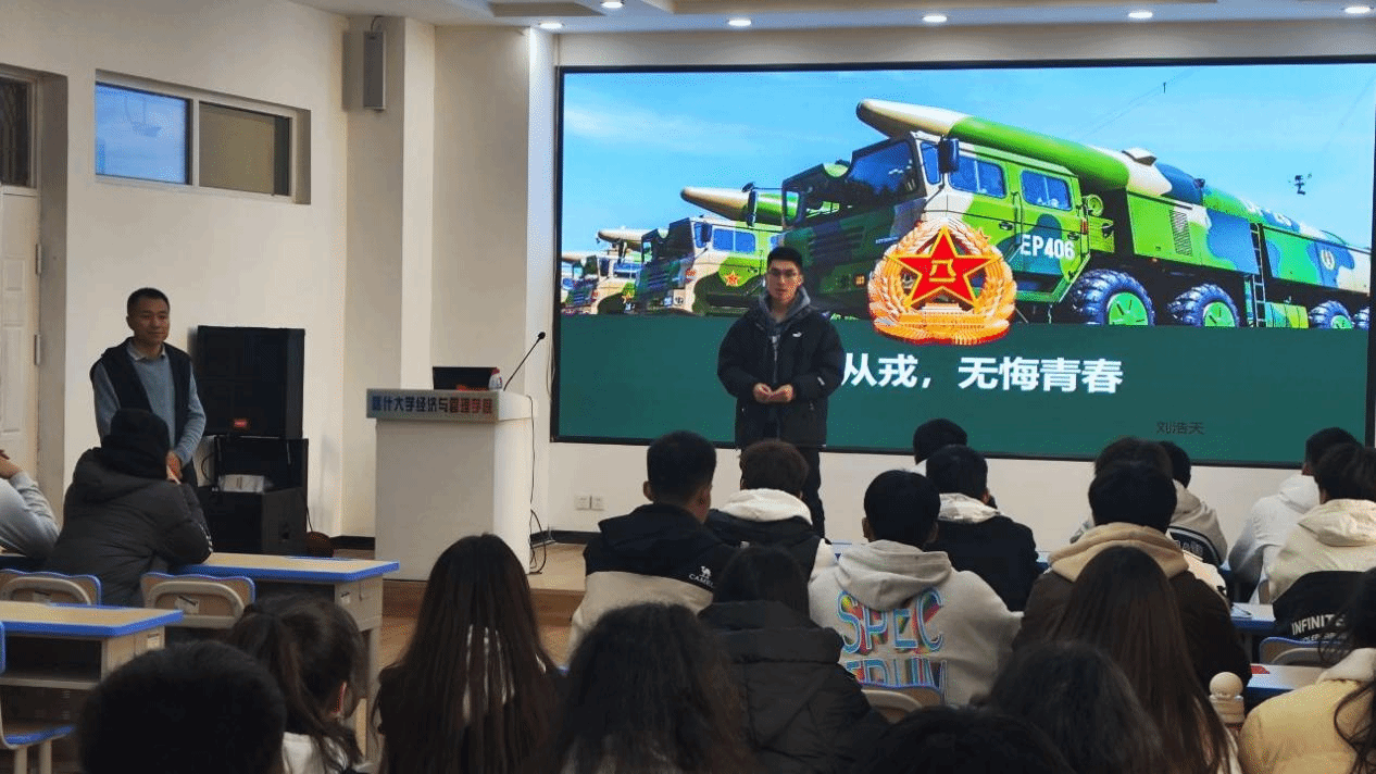 讲座上,退役士兵向同学们生动地介绍了参军入伍的相关政策、条件和程序,分享了自己在部队的成长经历和收获,以及参军对个人成长的积极影响。他们还分享了在部队中面对的挑战和困难,以及如何克服困难,不断进步的心路历程。这些真实而饱含感染力的故事,让在场的同学们深受感动和启发,增强了对参军入伍的认识和理解。