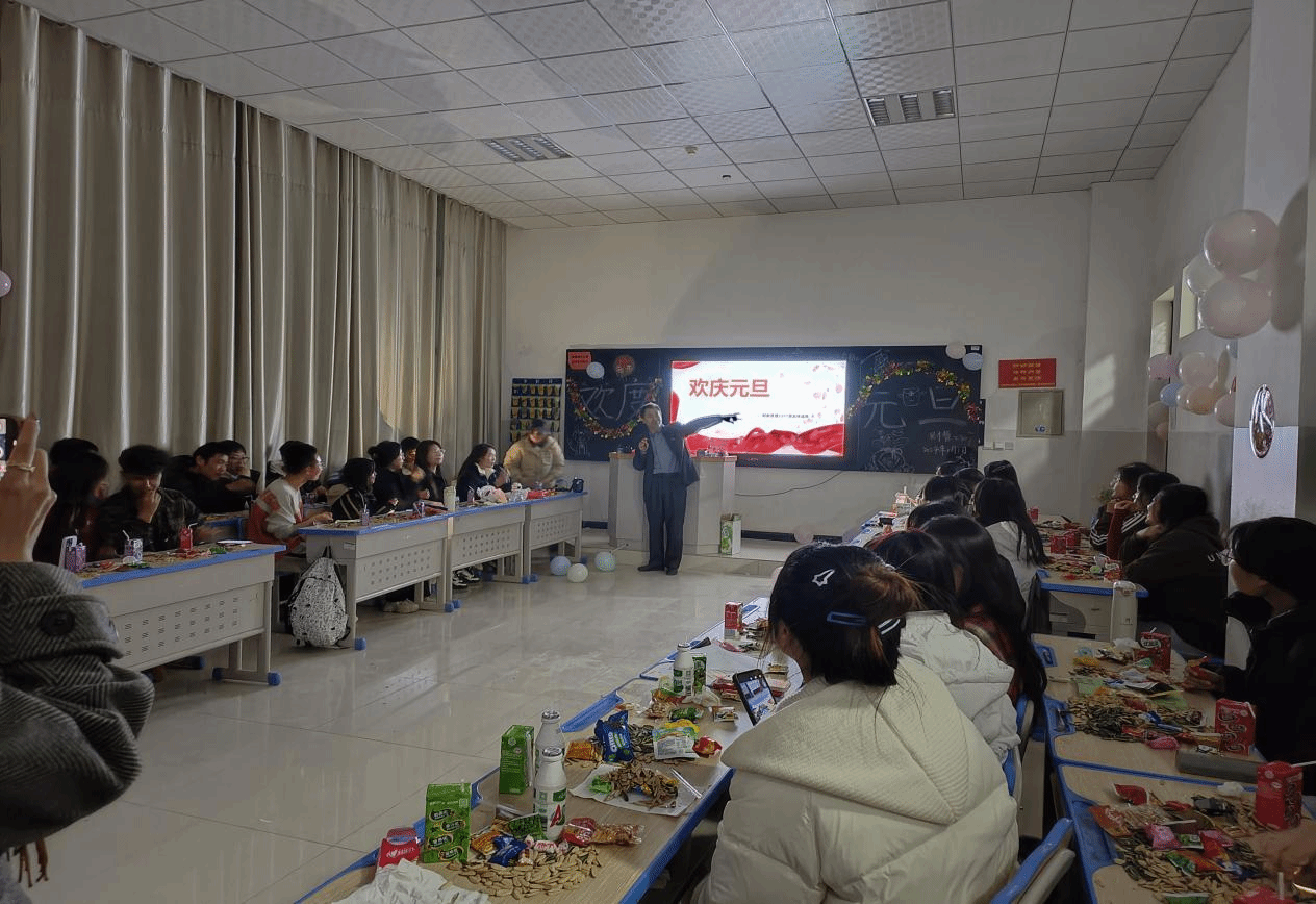 学院党委副书记贺波老师也参与到班级元旦活动中,他肯定了财管2207班学生干部过去一年的工作情况,也感谢同学们的相互配合,此次活动气氛活跃展现出了同学们很强的凝聚力,他也把学院党委对同学们的殷殷期盼和美好祝福带给了全体同学。