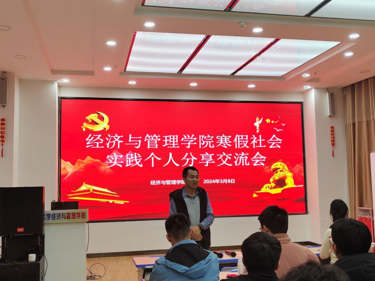 最后,经济与管理学院党委副书记贺波对本次活动进行了总结,他表示:希望通过此次社会实践活动分享会能够鼓励更多的学生走出校园,去体验社会的多彩多姿,只有走进社会、融入社会才能促进大学生更好地成长和发展。