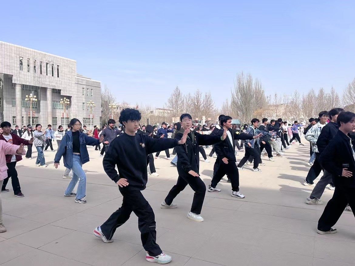 为了落实学校“五个人人”活动方案,经统2307班于3月20日在修读广场进行太极拳和新疆舞的学习。