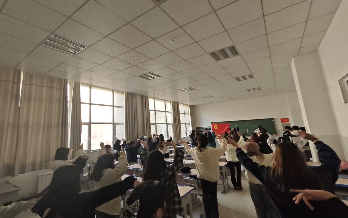 在活动过程中,由团支书带领同学们利用击鼓传花的游戏形式传唱红歌、分享红色故事,随后由种子选手们带领同学们随着欢快美妙的民族音乐跳起了新疆舞,在团日活动的最后全体同学通过视频方式,练习了太极拳的招式,整个活动过程十分愉快顺利的结束了。