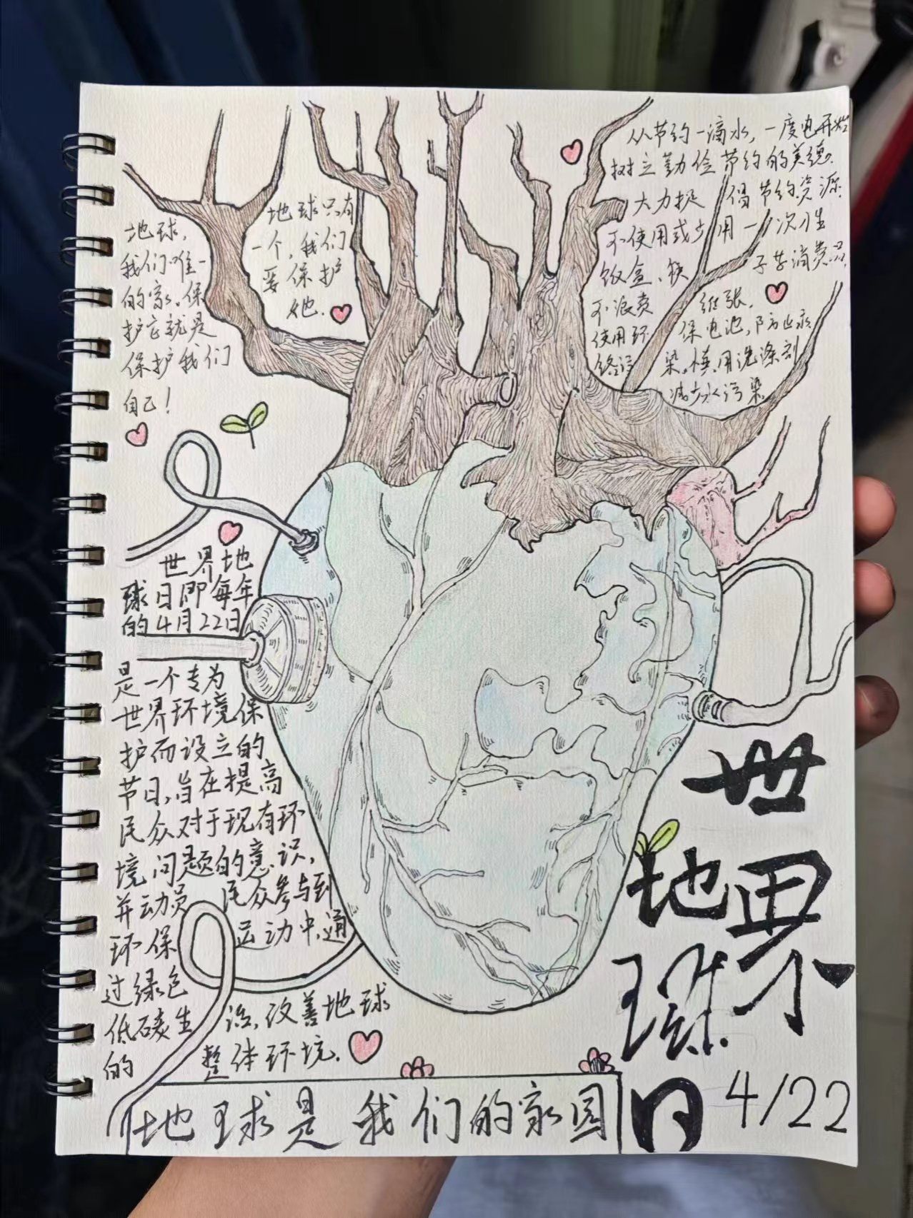 活动分为两形式,一是海报形式:发挥想象制作世界地球日的精美海报。另一种是手抄报形式:围绕世界地球日制作手抄报宣传环保提高大家环保的意识。两形式都要求参与者本人原创。活动一经发布就饱受大家欢迎,很多学生踊跃报名。大家对地球环境问题颇有了解,对此问题的关注度也很高。通过各个参与者的作品可以了解到现今大学生热爱自然、尊重自然、顺应自然、保护自然,提倡绿色低碳生活方式和生产方式等举措来改善地球的整体环境质量状况。