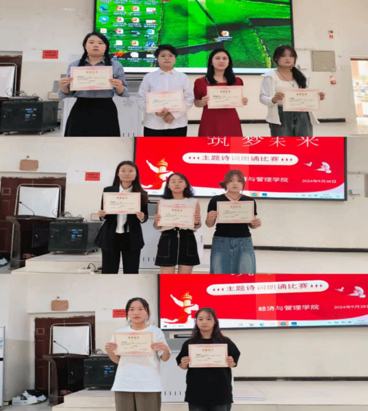 此次诗词朗诵比赛的成功举办,不仅是一场文学的盛宴,更是一场心灵的洗礼,激励着经济与管理学院师生不忘初心,牢记使命,以更饱满的热情投身到学习与工作中,为实现中华民族伟大复兴的中国梦贡献青春力量。