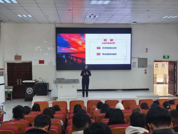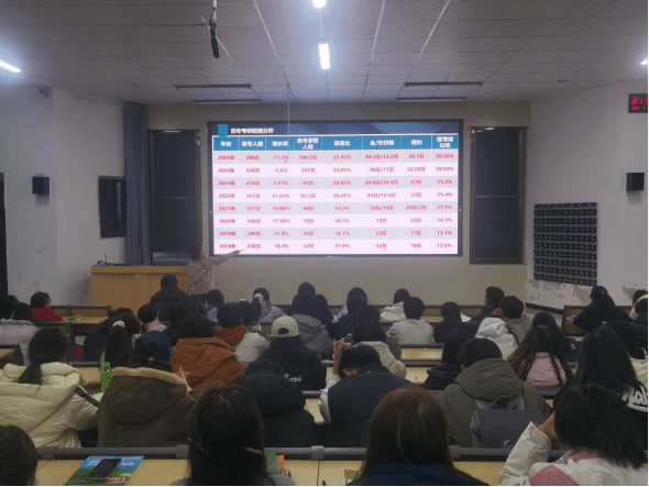 新泉校区的大三升学备考规划讲座以“2027考研:从策略到执行”为主题,邀请资深考研指导教师担任主讲嘉宾。指导教师结合历年考研数据,详细梳理了考研公共课(英语、政治)、专业课等各类课程的科学备考方法,涵盖复习节奏规划、高频考点提炼、答题技巧总结等实用策略。