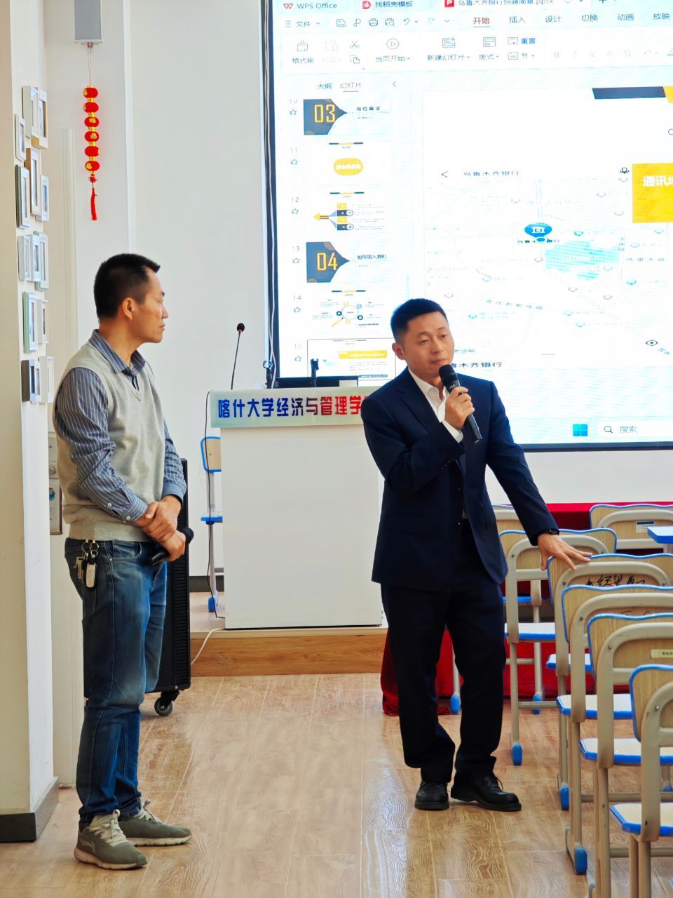 活动伊始,由乌鲁木齐银行刘东方为毕业生们详细介绍了银行的工作内容、工作地点、福利待遇等方面的情况,让同学们对该企业有了更加全面的了解。随后,乌鲁木齐银行负责人分享了乌鲁木齐银行的工作环境和企业文化。至此,招聘会宣讲告一段落进入了互动环。同学们纷纷向代表们提问,其中包括晋升机制、职业发展规划等问题,乌鲁木齐银行团队在了解到同学们的疑问后耐心解答,为他们提供了宝贵的建议和指导。宣讲会结束后,经济与管理学院党委副书记贺波与乌鲁木齐银行喀什分行副行长刘辉进行了深入交流,就后续共建合作基地等事宜达成了共识。